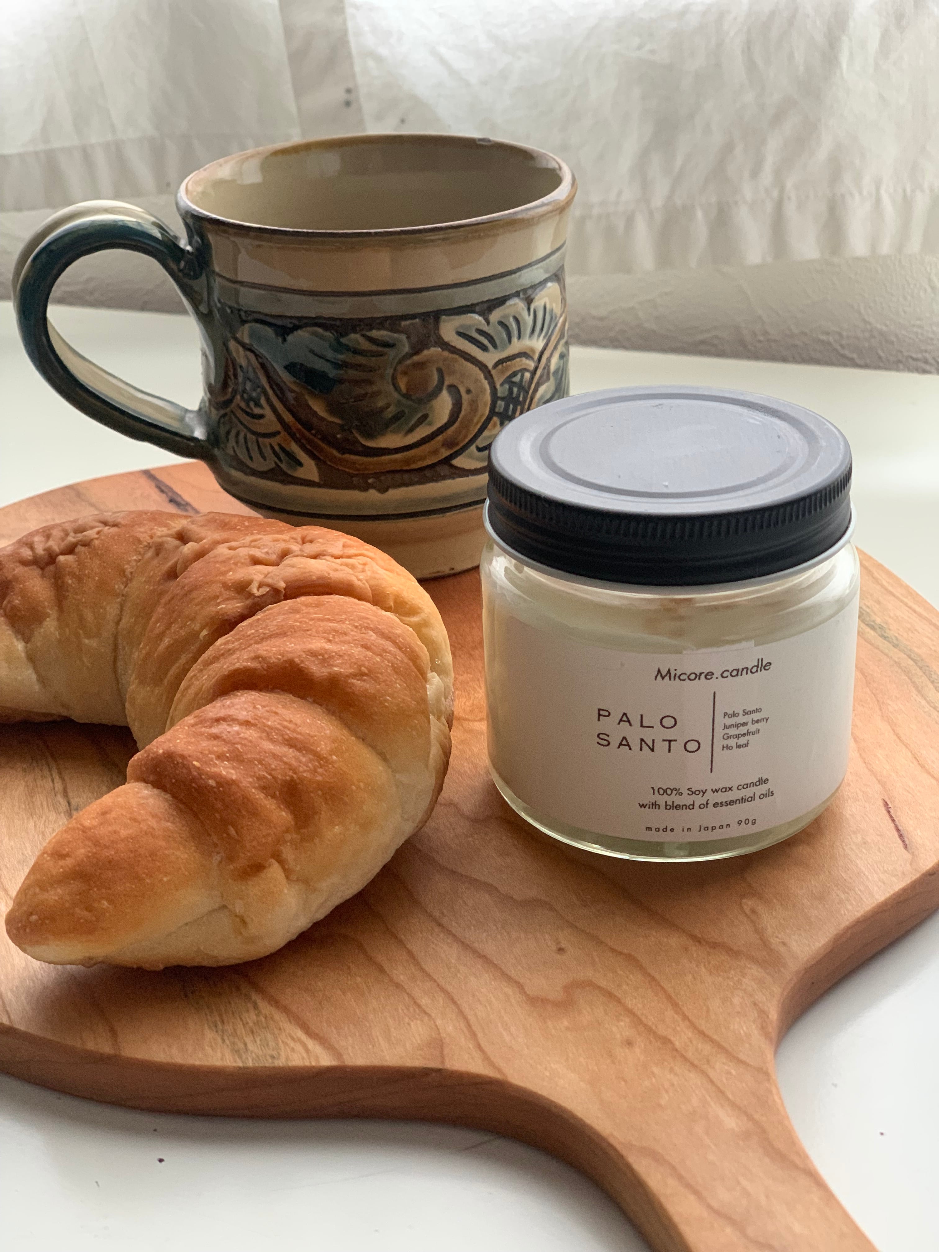 Palo Santo Candle パロサント キャンドル 静けさがまだ残る朝。 ひとつ深呼吸をするように、パロサントのやさしい香りが心を整えてくれます。 聖なる木と呼ばれる香木、パロサント。清涼感のあるジュニパーベリー、明るいグレープフルーツ、深く落ち着きをくれるホーリーフをブレンド。 澄んだ空気に似合う、清らかで凛とした香りです。 自然由来のソイ(大豆)ワックスを使用。 煙が少なく、空間内の空気をクリーンにしてくれ、低温でゆっくり溶けて、 やさしく揺れる灯りとともに、精油の香りがふわりと広がります。 おすすめのシーン: 朝の始まりに、カーテンを開けて光を感じながら、深呼吸とともに自分のリズムを取り戻す時間に。 原料 : 100%ソイワックス コットン芯 パロサント 精油 ジェニパーベリー・ グレープフルーツ・ホーリーフ 大きさ :W6.7H6.6 燃焼時間 : 25〜30時間 ※キャンドルの取り扱いをご確認の上、ご使用ください。