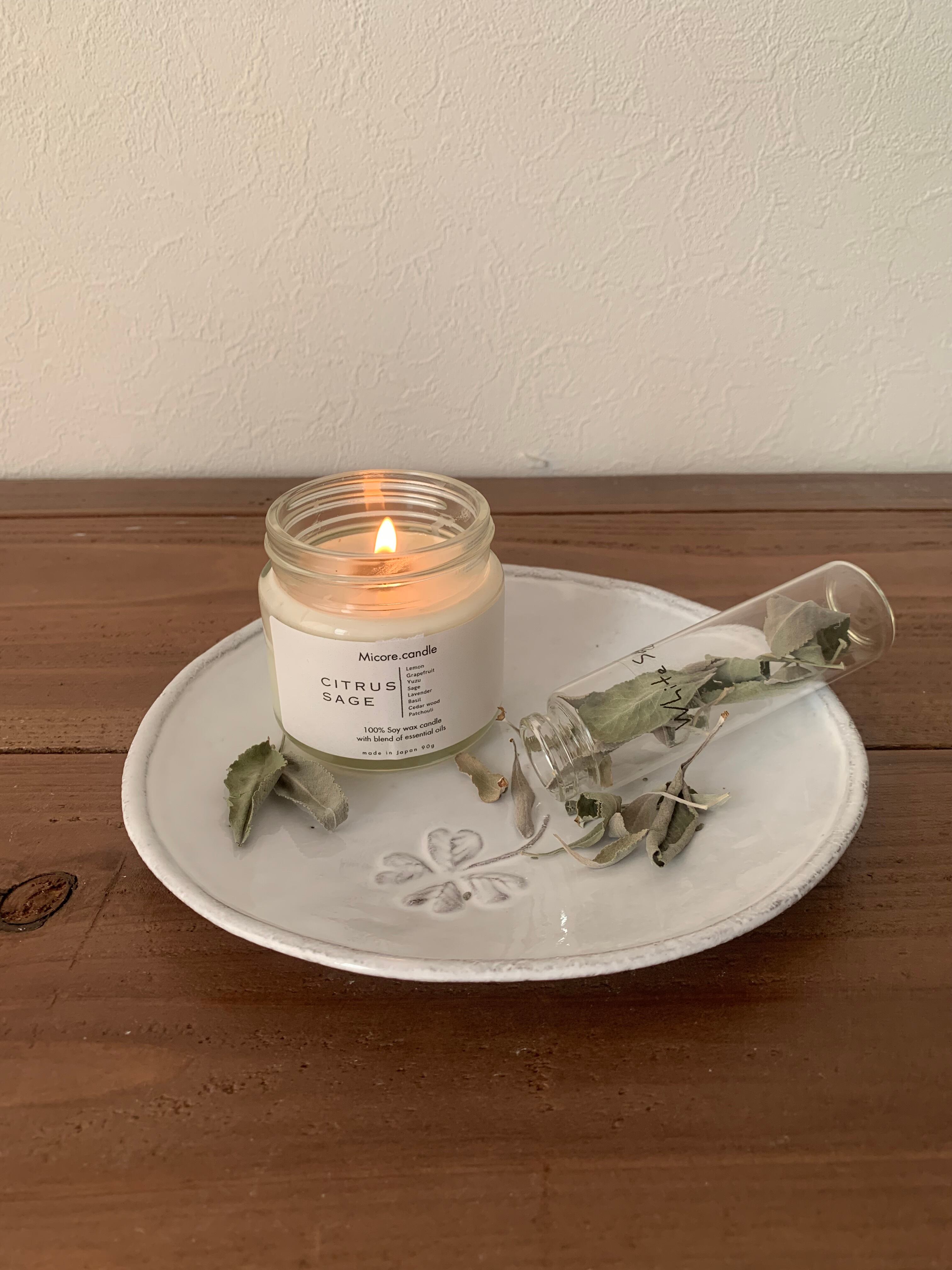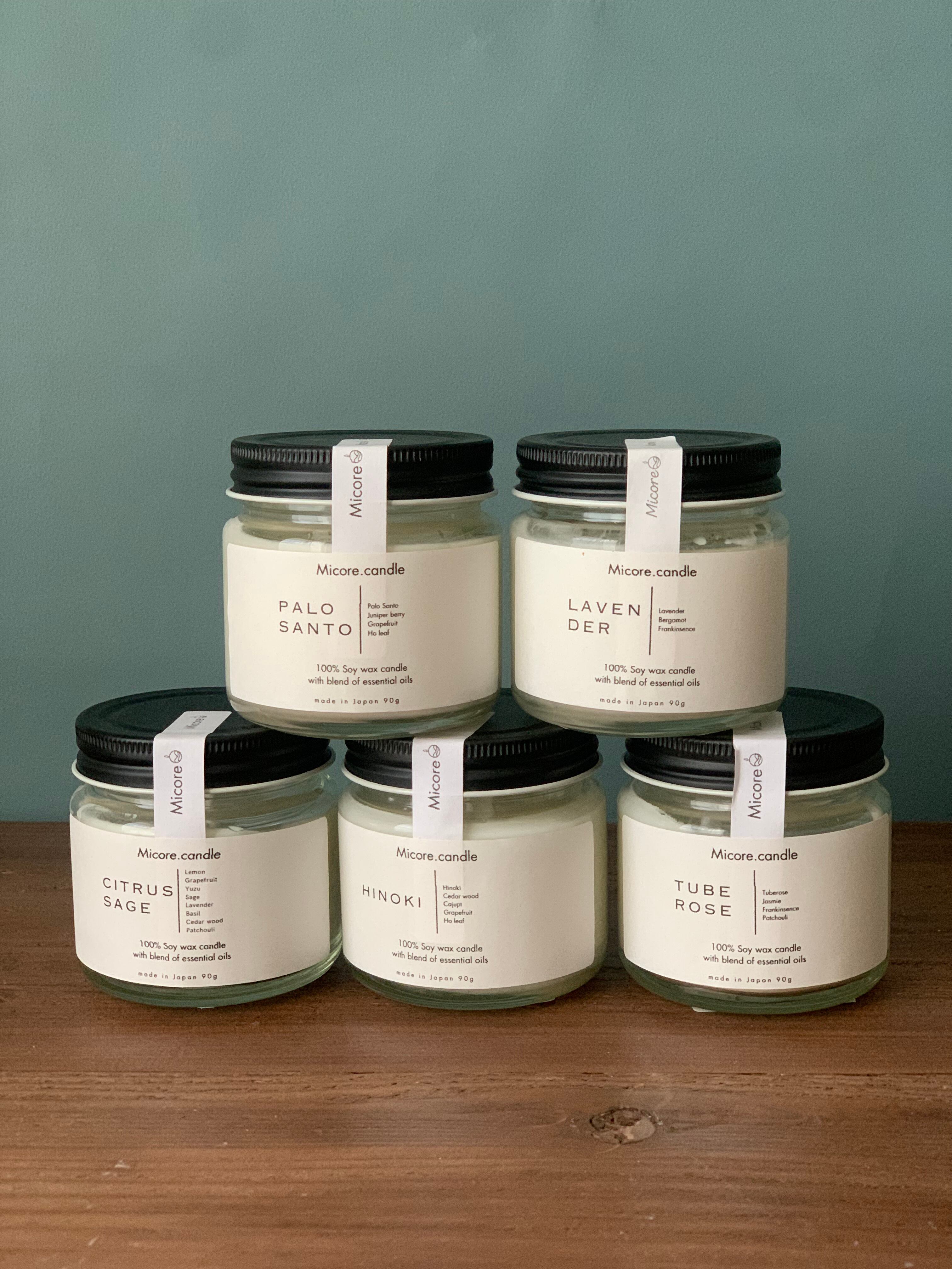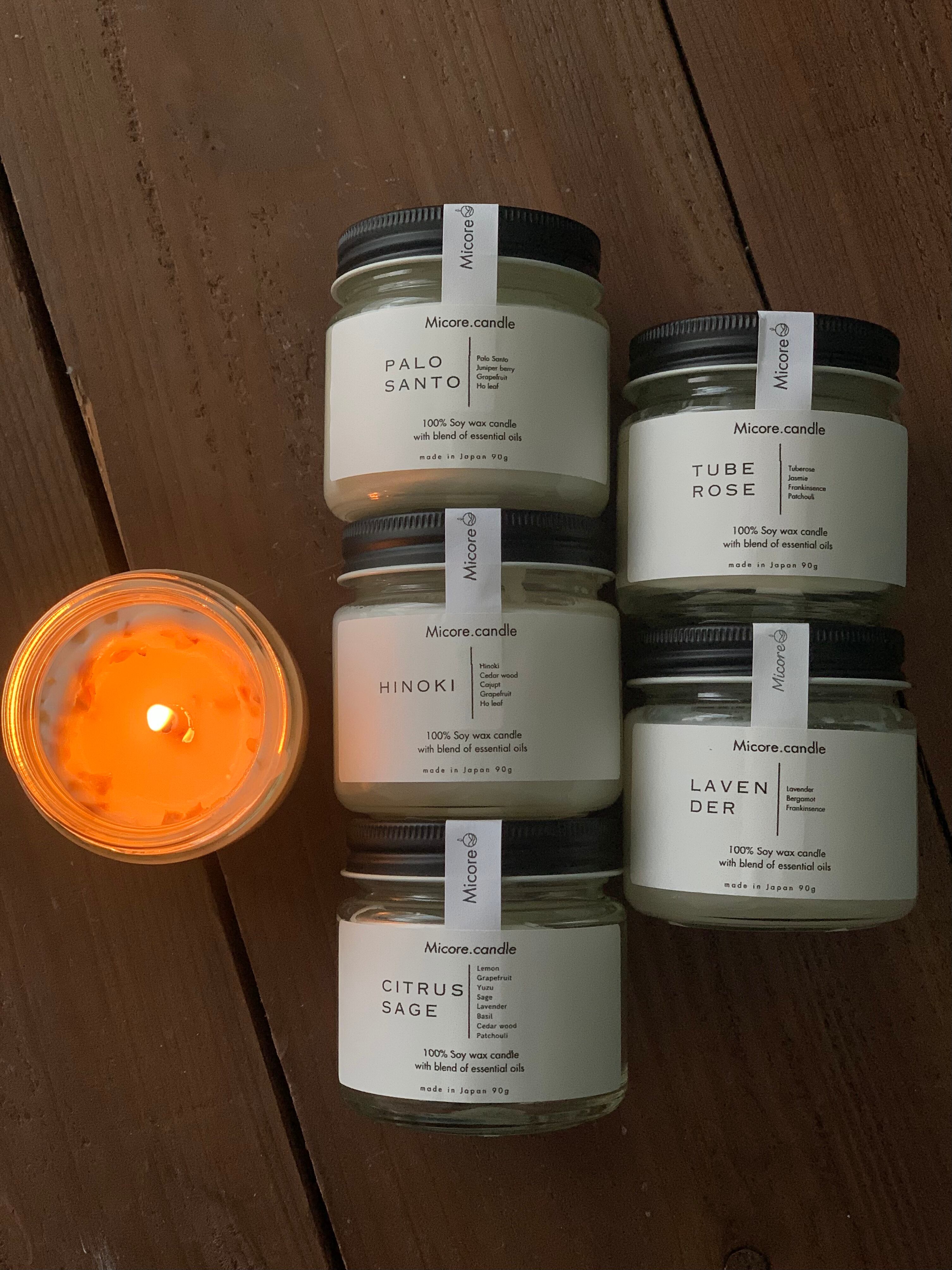 煙が少なく、空間内の空気をクリーンにしてくれ、低温でゆっくり溶けてため、やさしく揺れる灯りとともに、精油の香りがふわりと広がります。